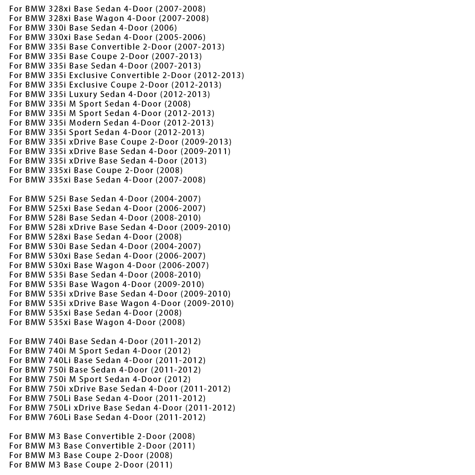 For BMW 335i Base Sedan 4-Door (2007-2013)