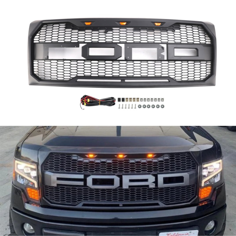 Ford F150 2009-2014 Black Raptor Style Front Bumper Grille Grill With LED Generic
