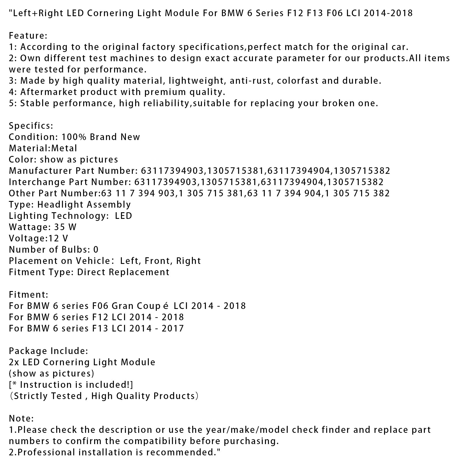 Left+Right LED Cornering Light Module For BMW 6 Series F12 F13 F06 LCI 2014-2018