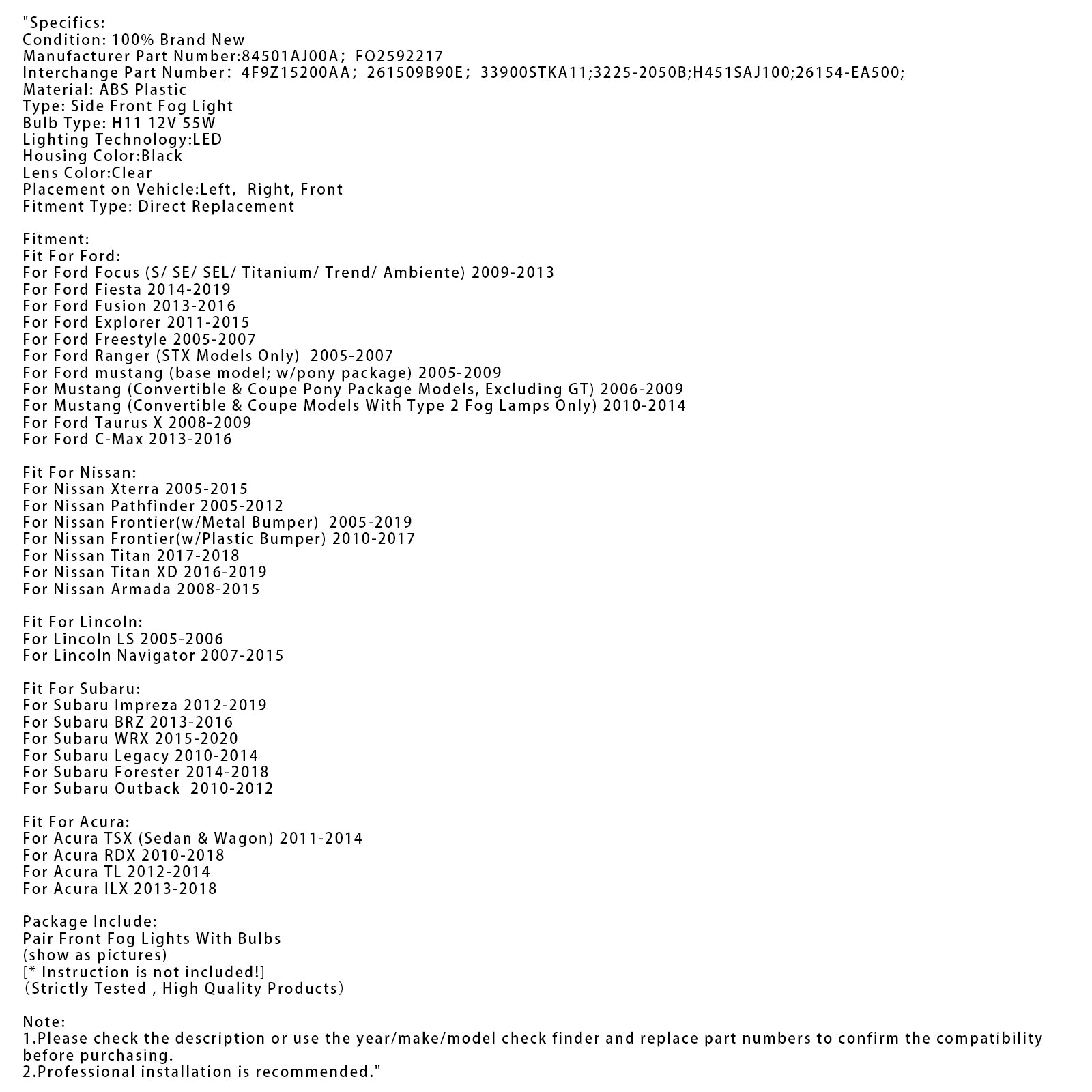 Placement on Vehicle:Left,Right, Front