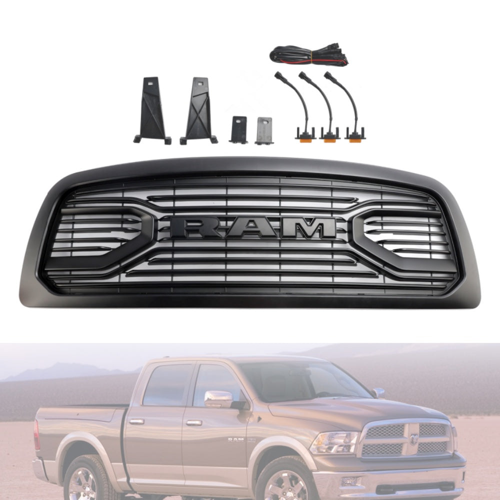 2009-2012 Dodge Ram 1500 Matte Black Front Bumper Grill Grille W/ Led Light Generic