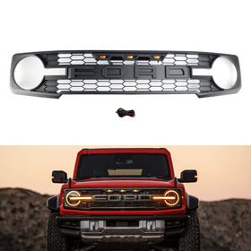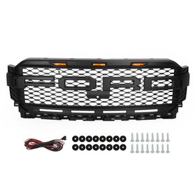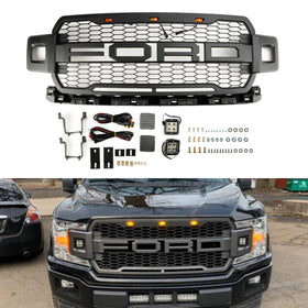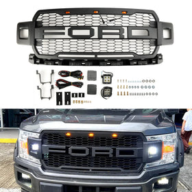 2024-2025 Ford F150 Raptor Style Front Grill Upper Bumper Black Grille W/ LED Light & Letter