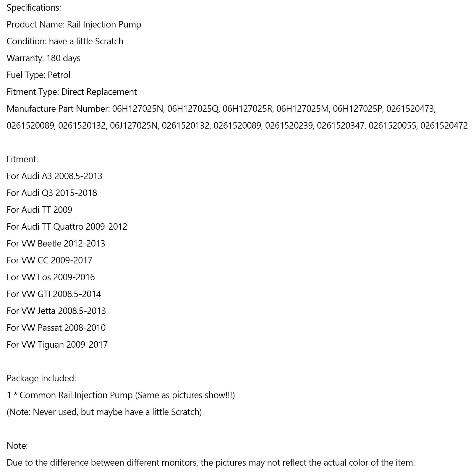 2009-2012 Audi TT Quattro High Pressure Fuel Pump 06H127025N 06H127025R 0261520473 06H127025Q Generic
