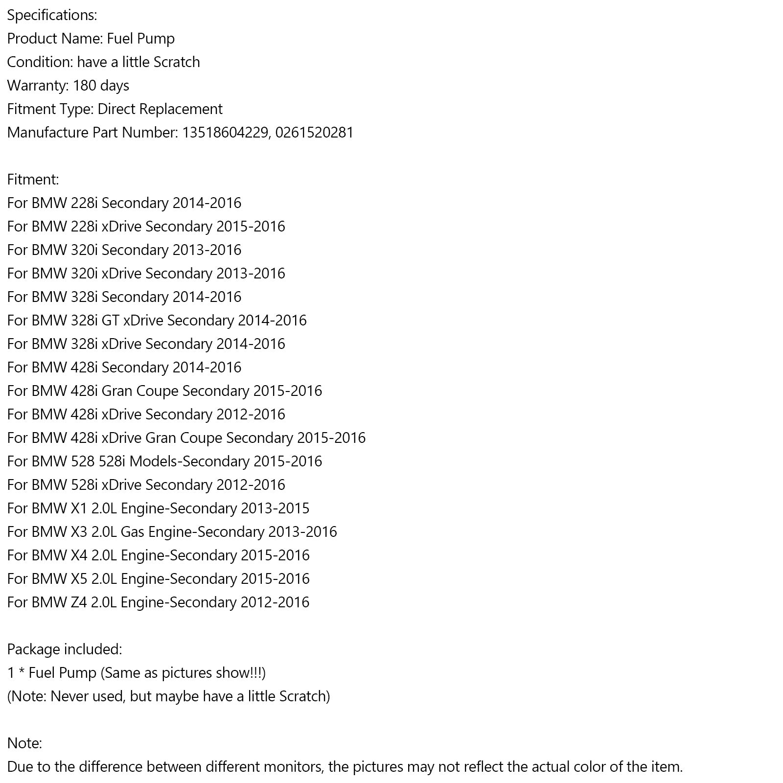 BMW 228i 328i 428i 528i X1 X3 X4 X5 High Pressure Fuel Pump 13518604229 0261520281 Generic