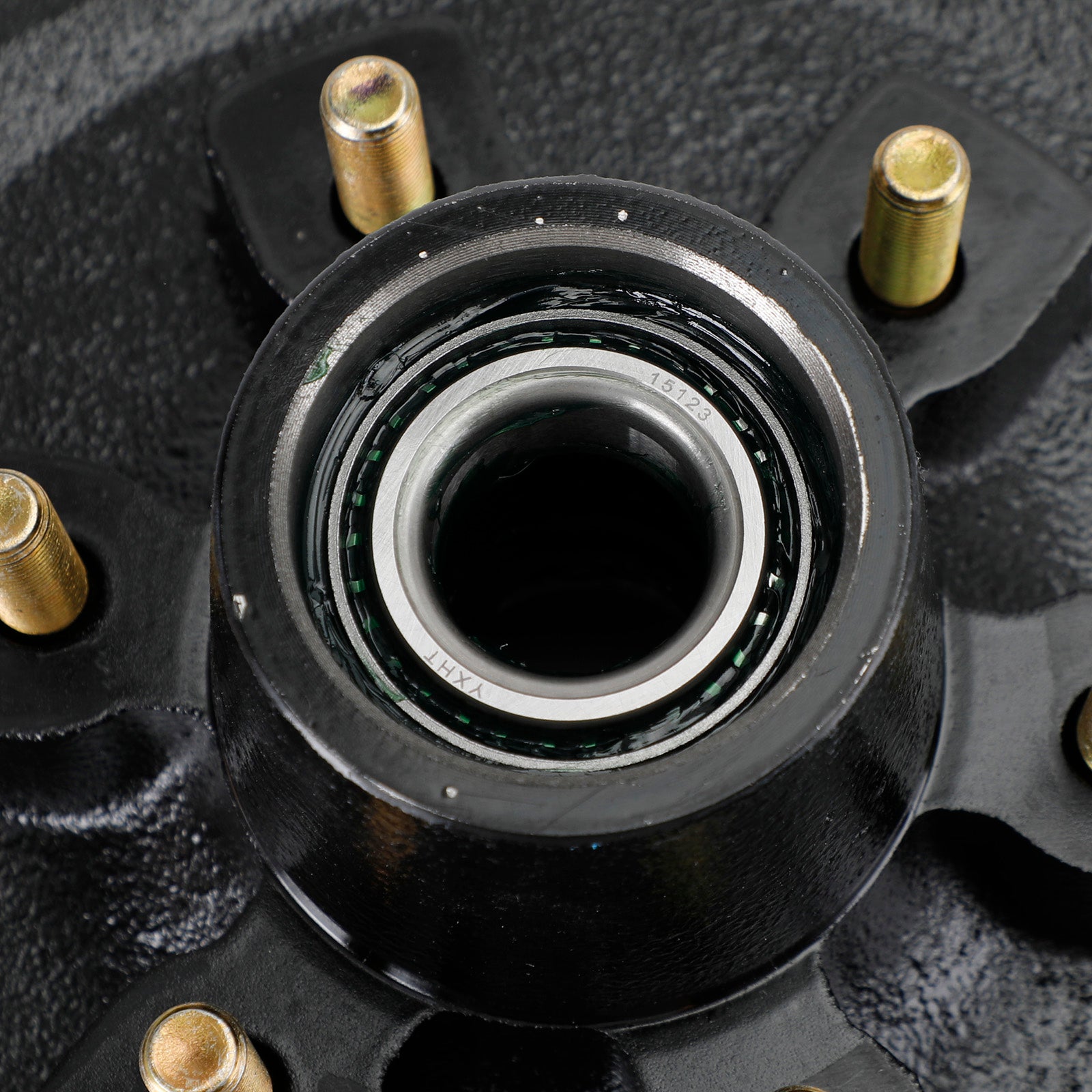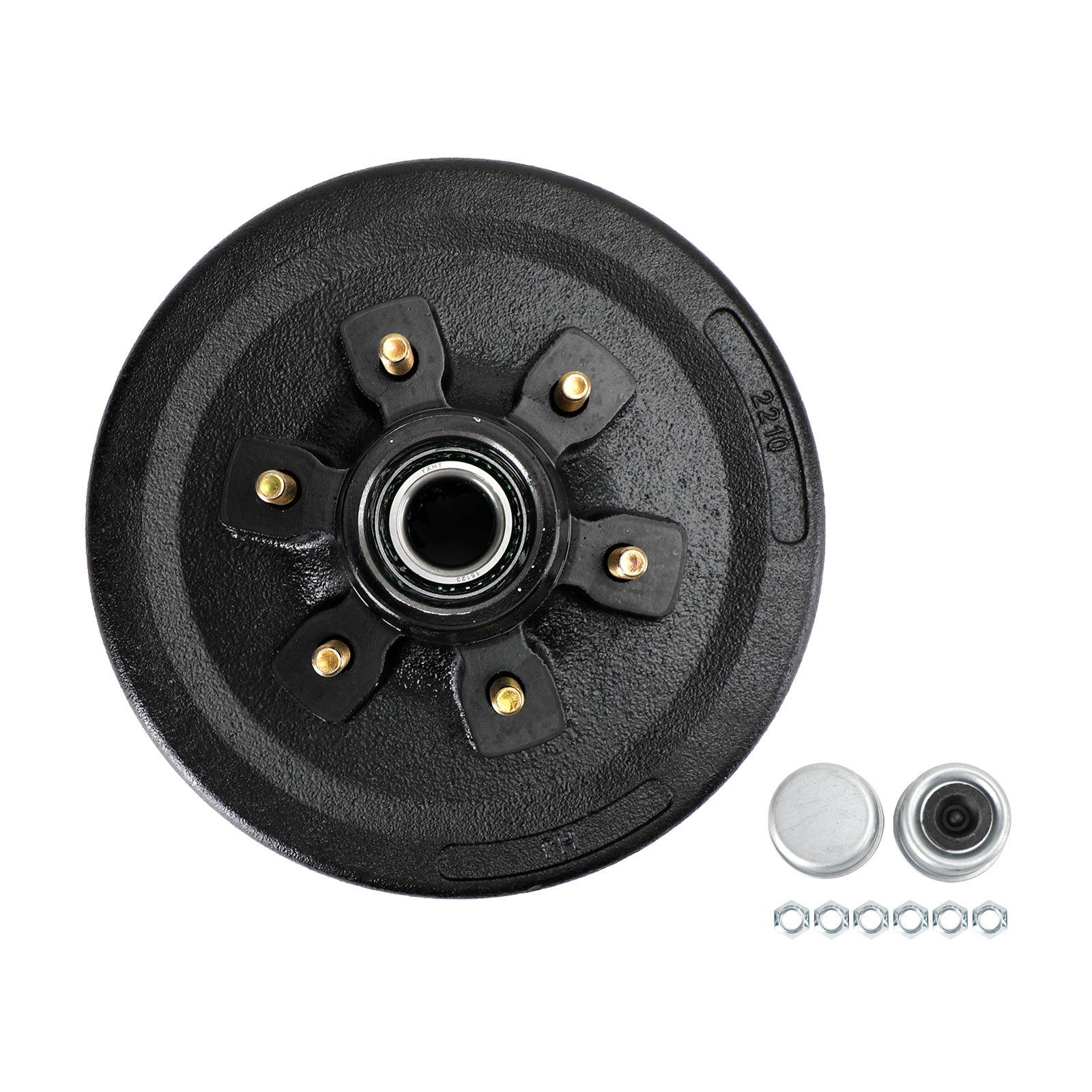 Install this hub-and-drum assembly on your trailer. For electric or hydraulic brakes. Fits 5.2K and 6K Dexter E-Z Lube and etrailer Easy Grease axles. Inner bearing (25580) and race, outer bearing (15123) and race, grease seal, cap and nuts included.