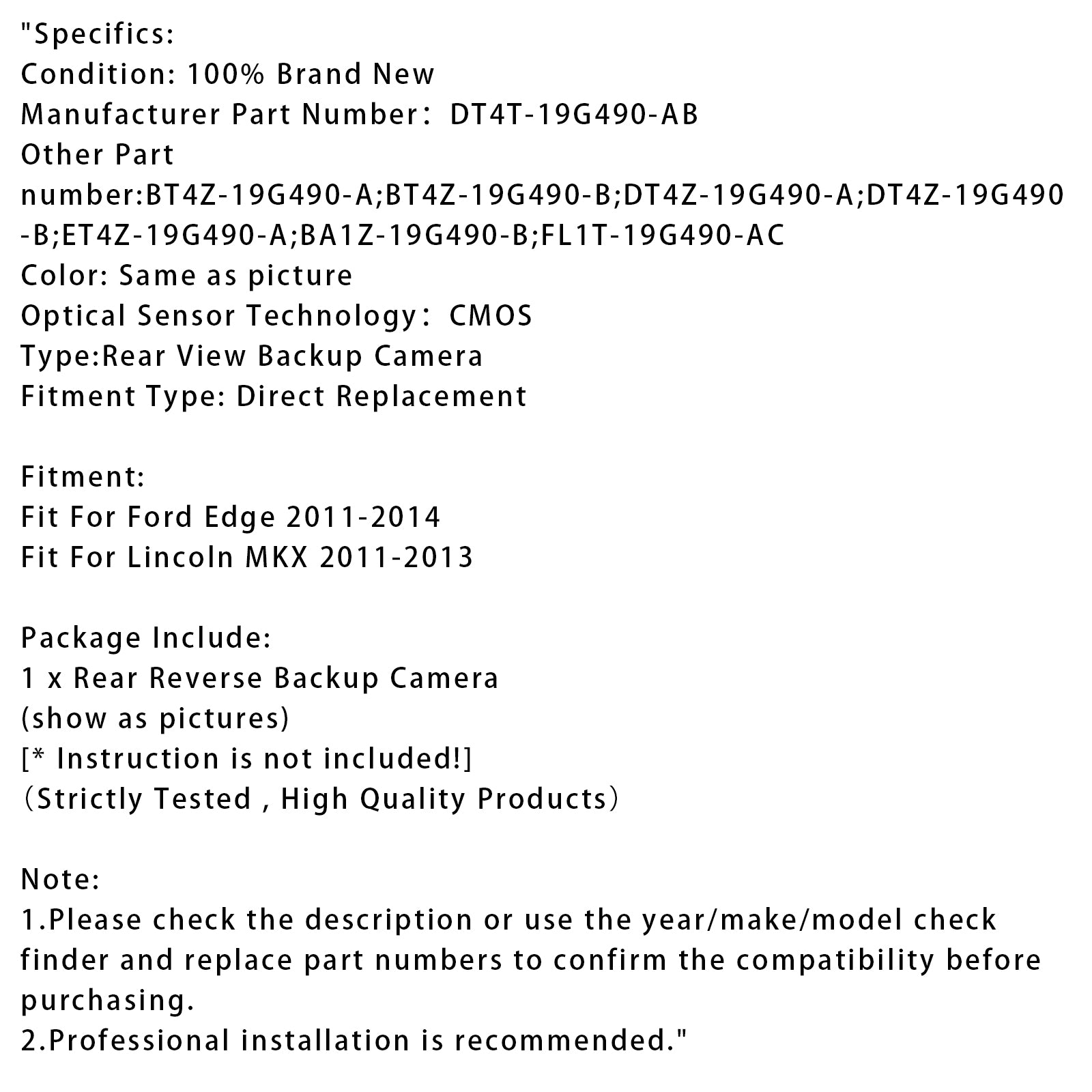 Rear Reverse Backup Camera Park Assist For Ford Edge 2011-2015 DT4T-19G490-AB