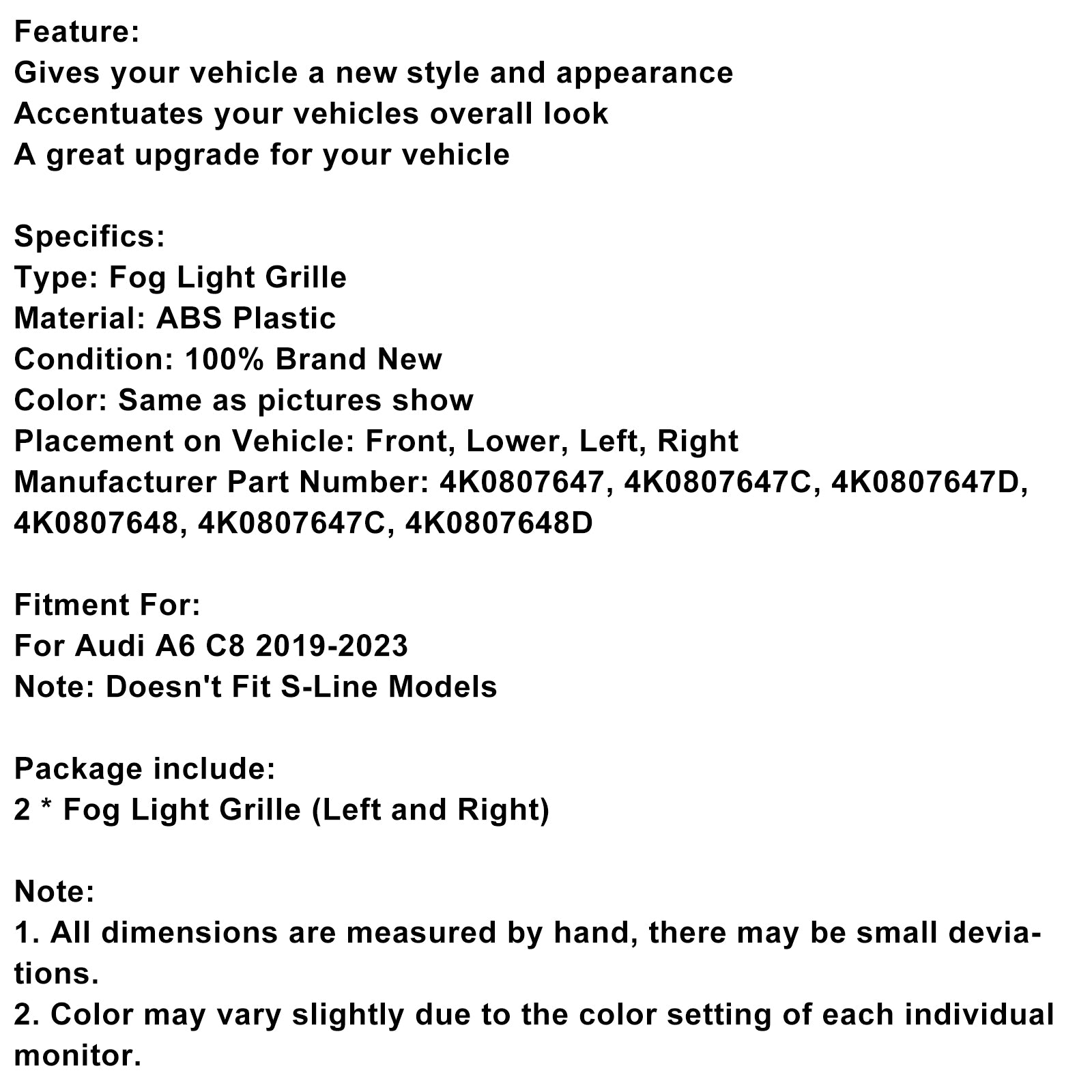 2PCS Front Bumper Fog Light Cover Grill Grille Fit Audi A6 C8 2019-2023