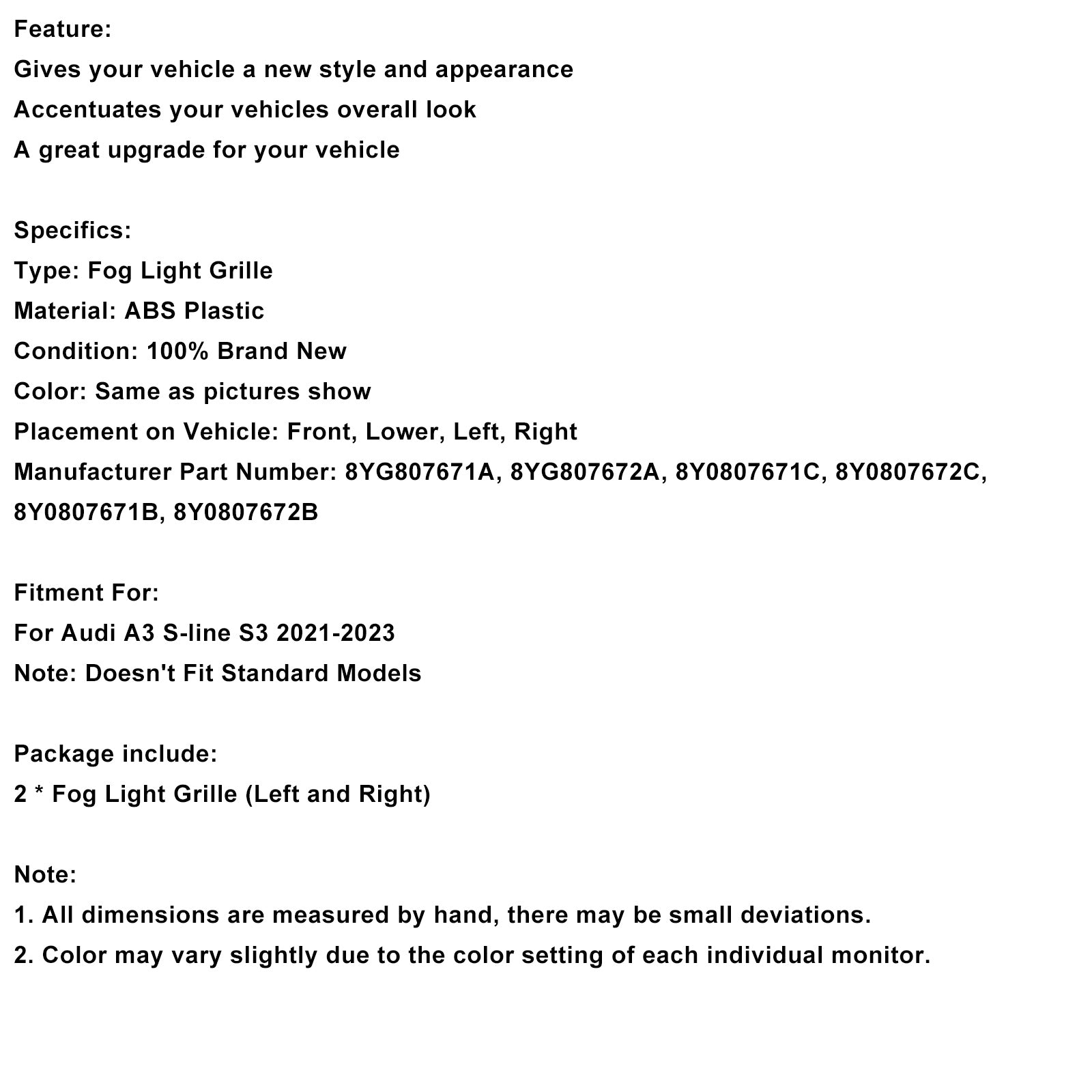 Audi A3 S-line 2021-2023 Black Front Honeycomb Fog Light Grill Cover
