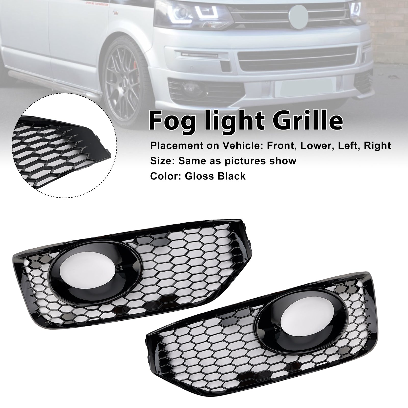 Fog Lamp Light Cover Insert Grille Fit VW T5 T5.1 2010-2015 S-line Gloss Black