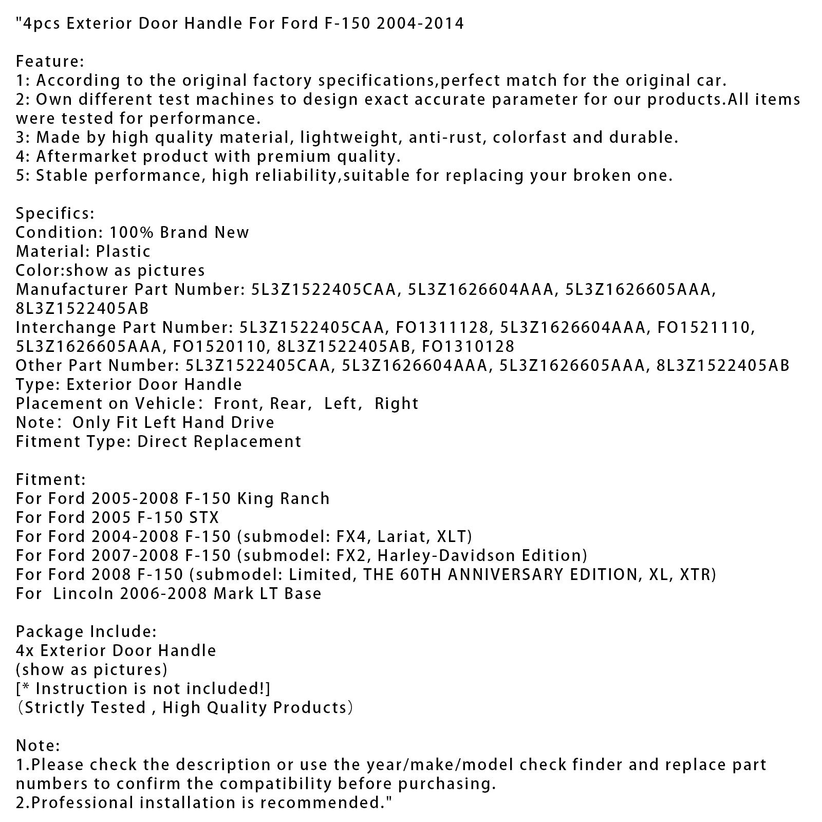 Note:Only Fit Left Hand Drive
