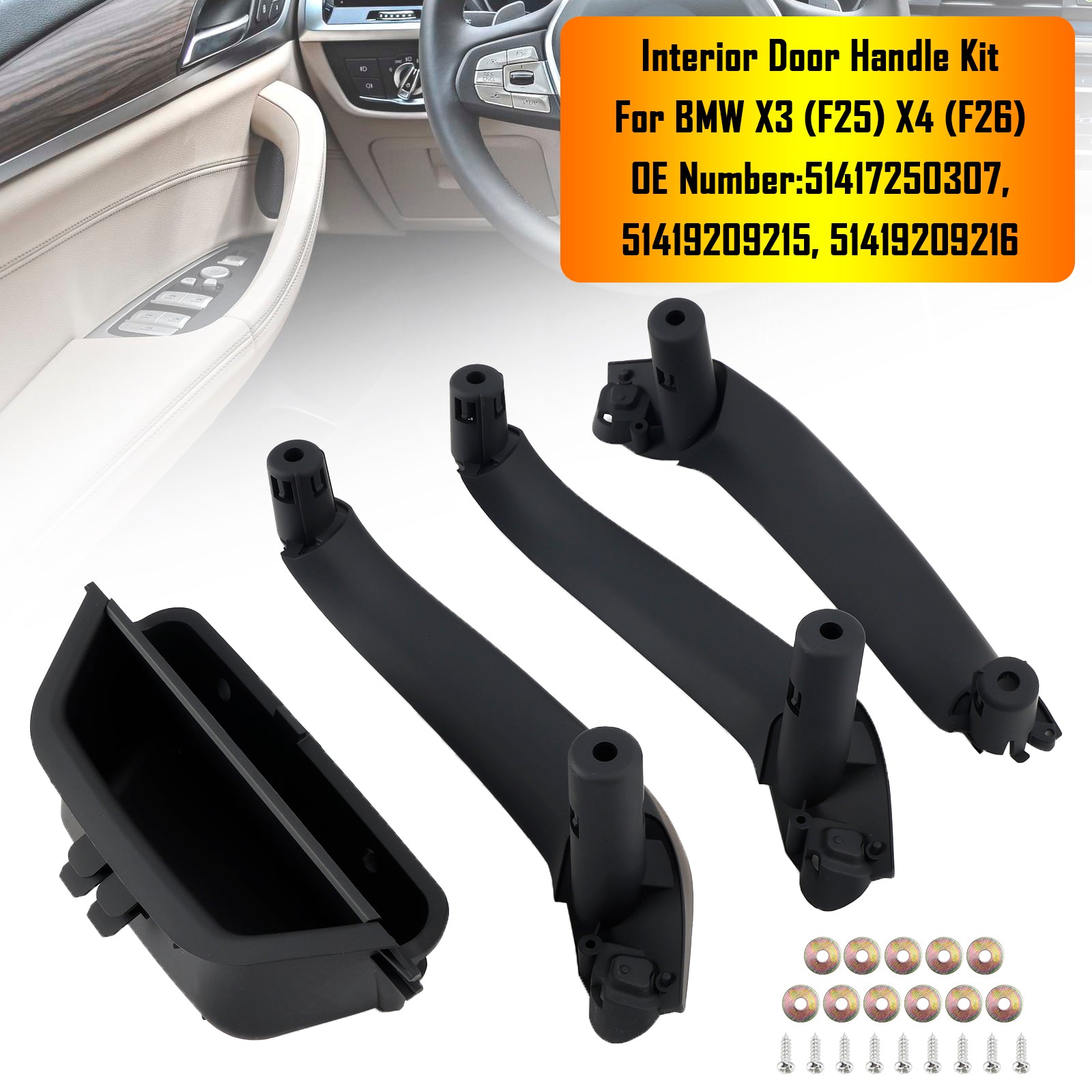 Black Interior Door Handle Kit 51417250307 for BMW X3 (F25) X4 (F26)