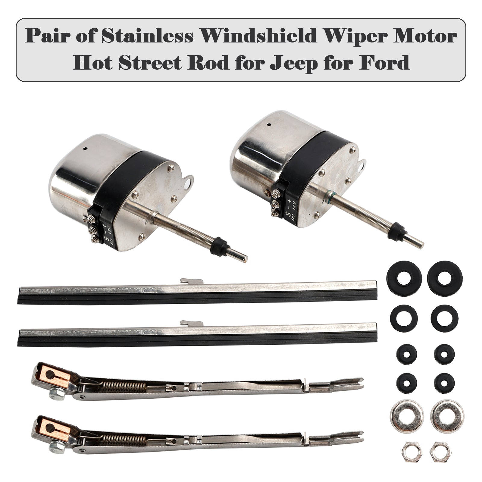 Vintage Classic Cars Hot Rods Pair of Stainless Windshield Wiper Motor Hot Street Rod 558SS, S6558 Generic