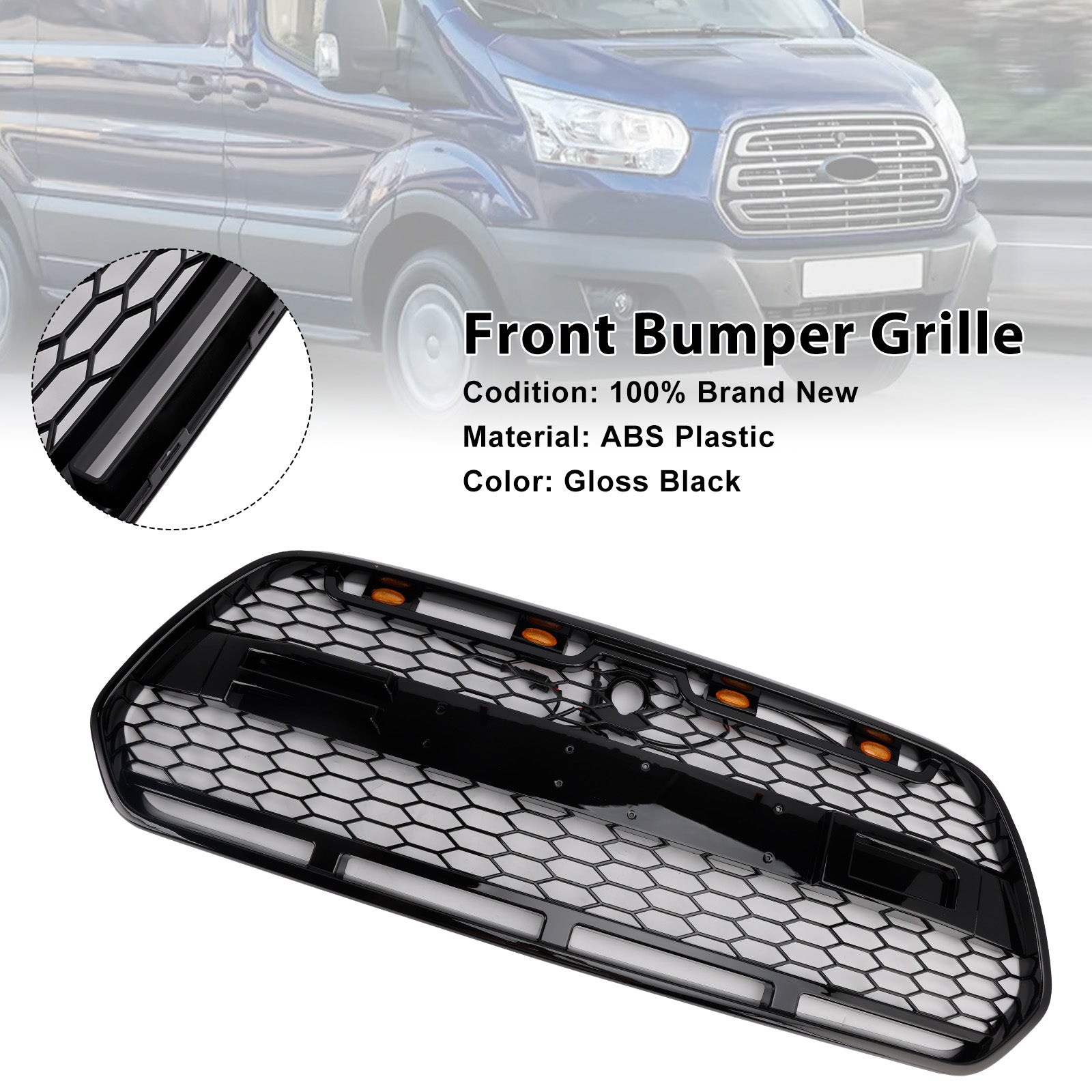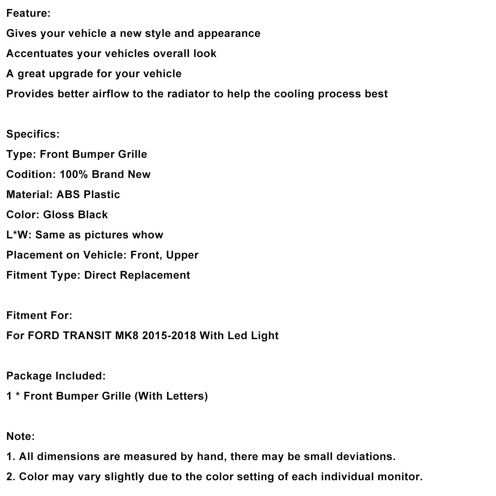 Gloss Black Front Bumper Grille Grill Fit Ford Transit MK8 2015-2018 Raptor W/LED