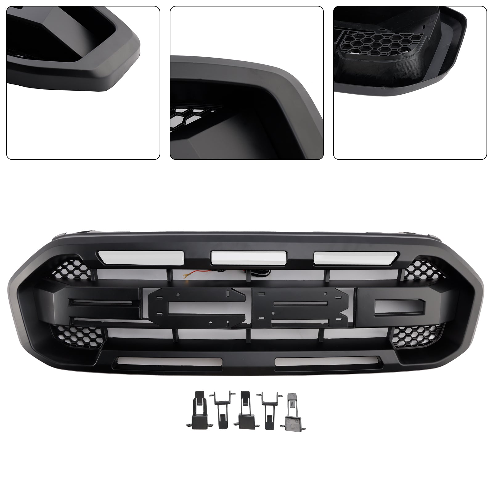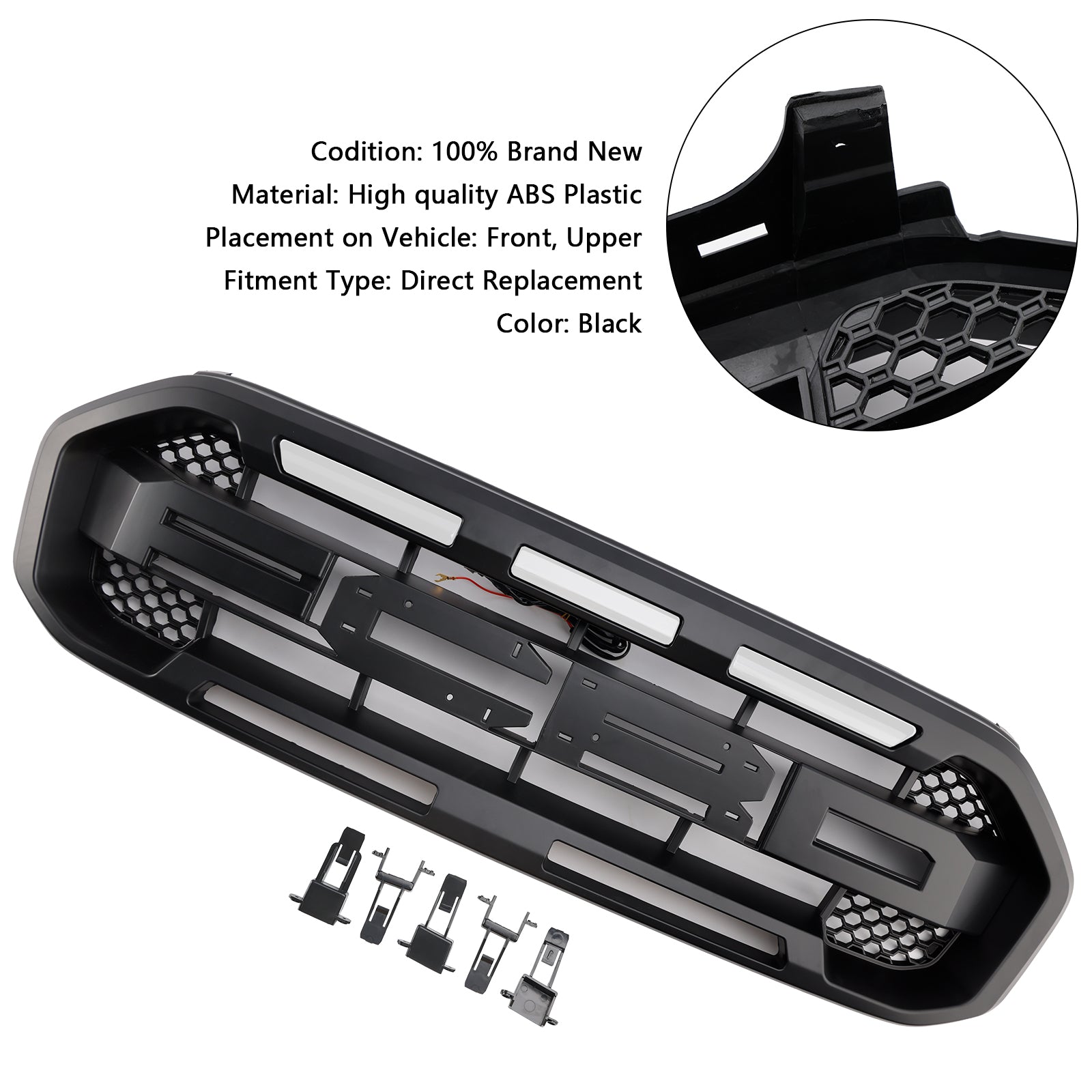 2019-2023 Ford Ranger With LED Light no front cameras Black Raptor Style Front Bumper Grill Grille Generic