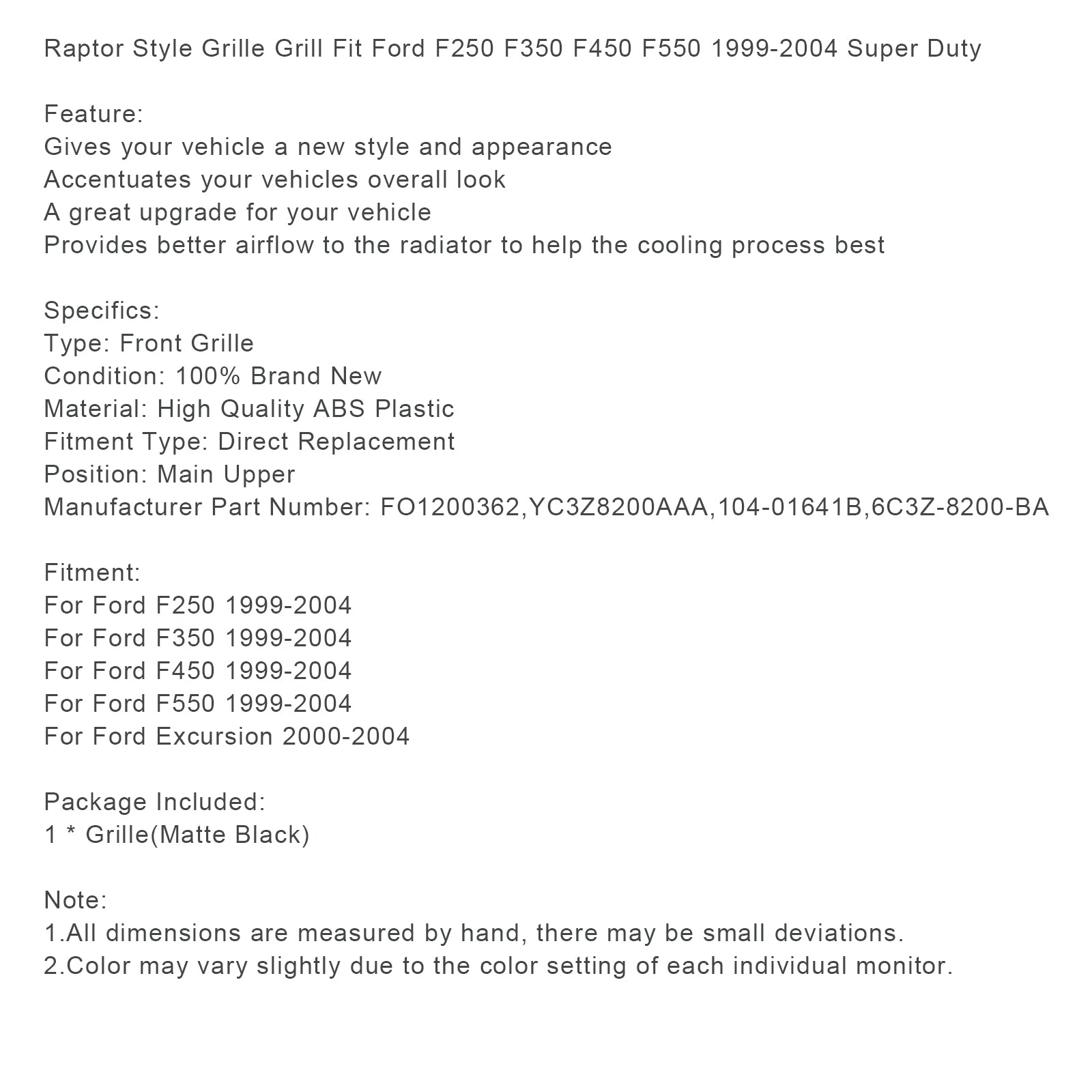 Raptor Style Grill Grille Fit Ford F250 F350 F450 F550 1999-2004 Super Duty