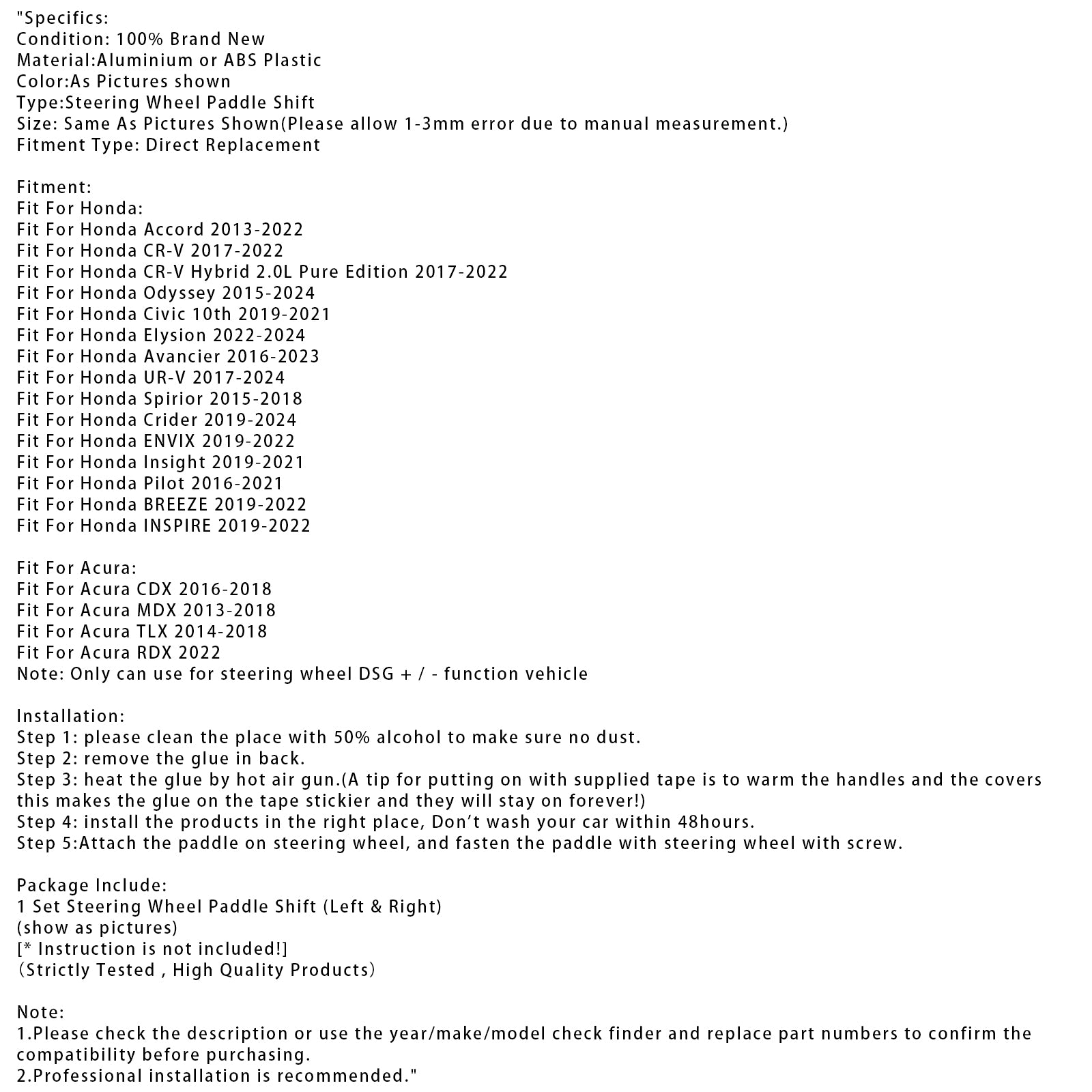 Steering Wheel Paddle Shifter For Honda CR-V Accord 2013-2022