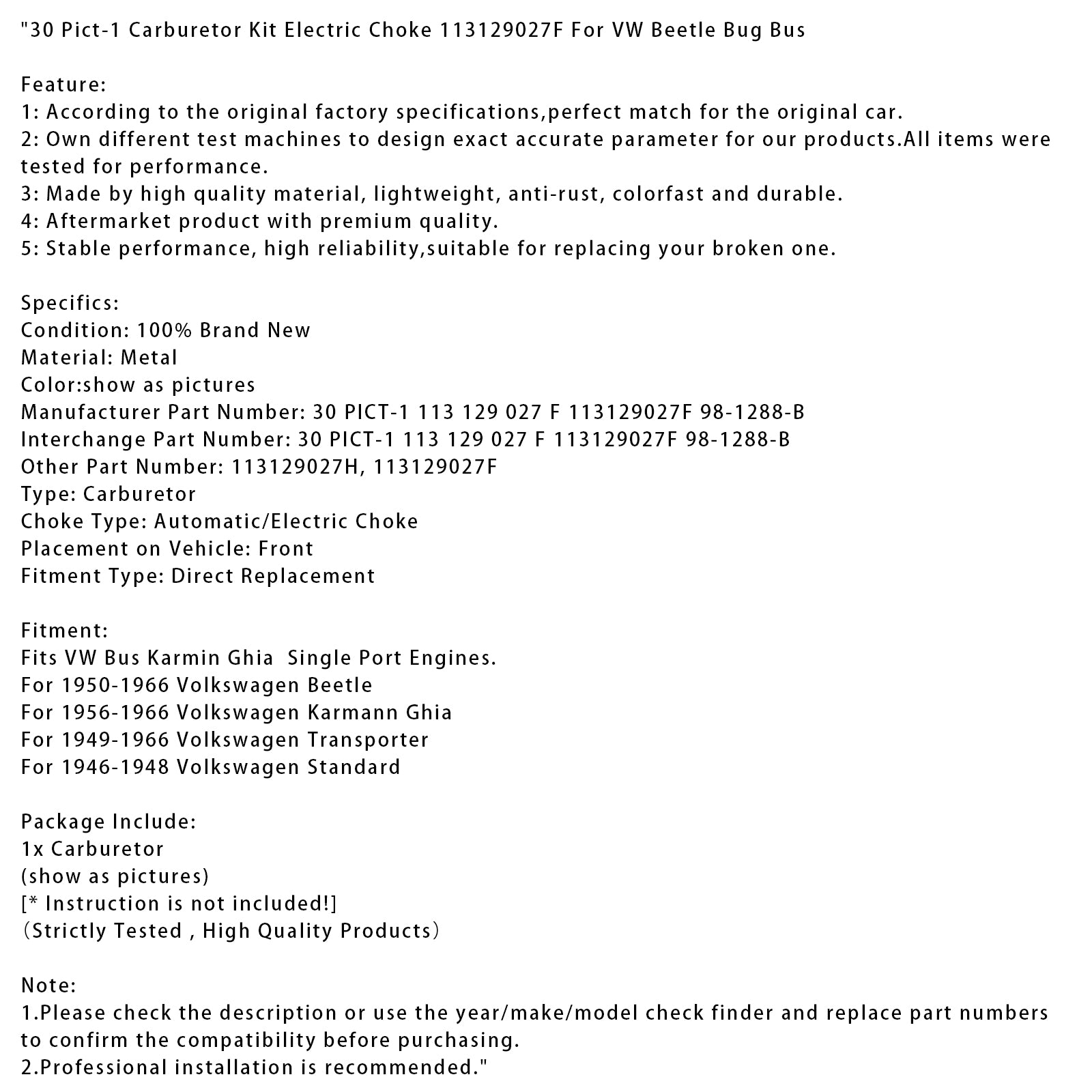 30 Pict-1 Carburetor Kit Electric Choke 113129027F For VW Beetle Bug Bus