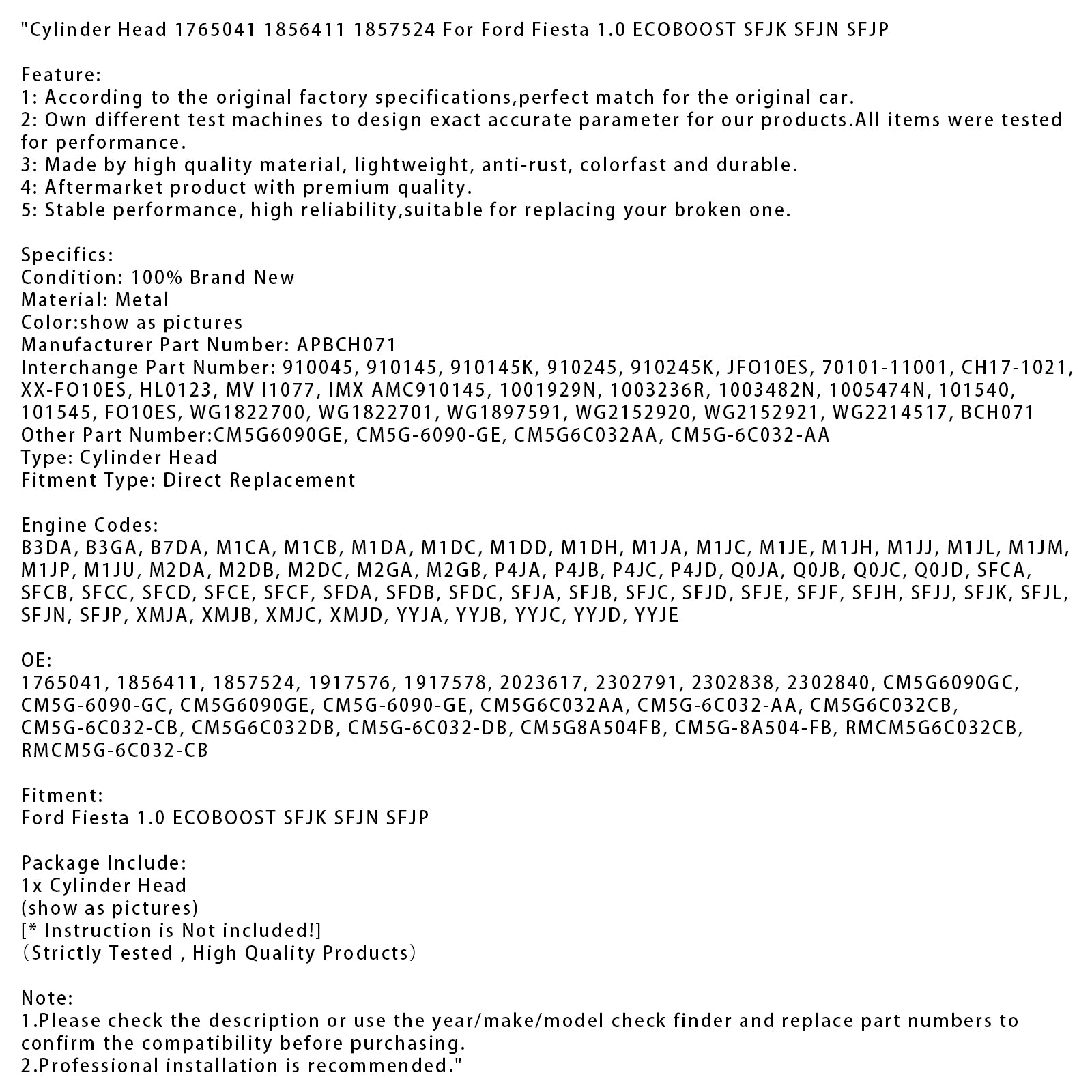 Cylinder Head 1765041 1856411 1857524 For Ford Fiesta 1.0 ECOBOOST SFJK SFJN SFJP