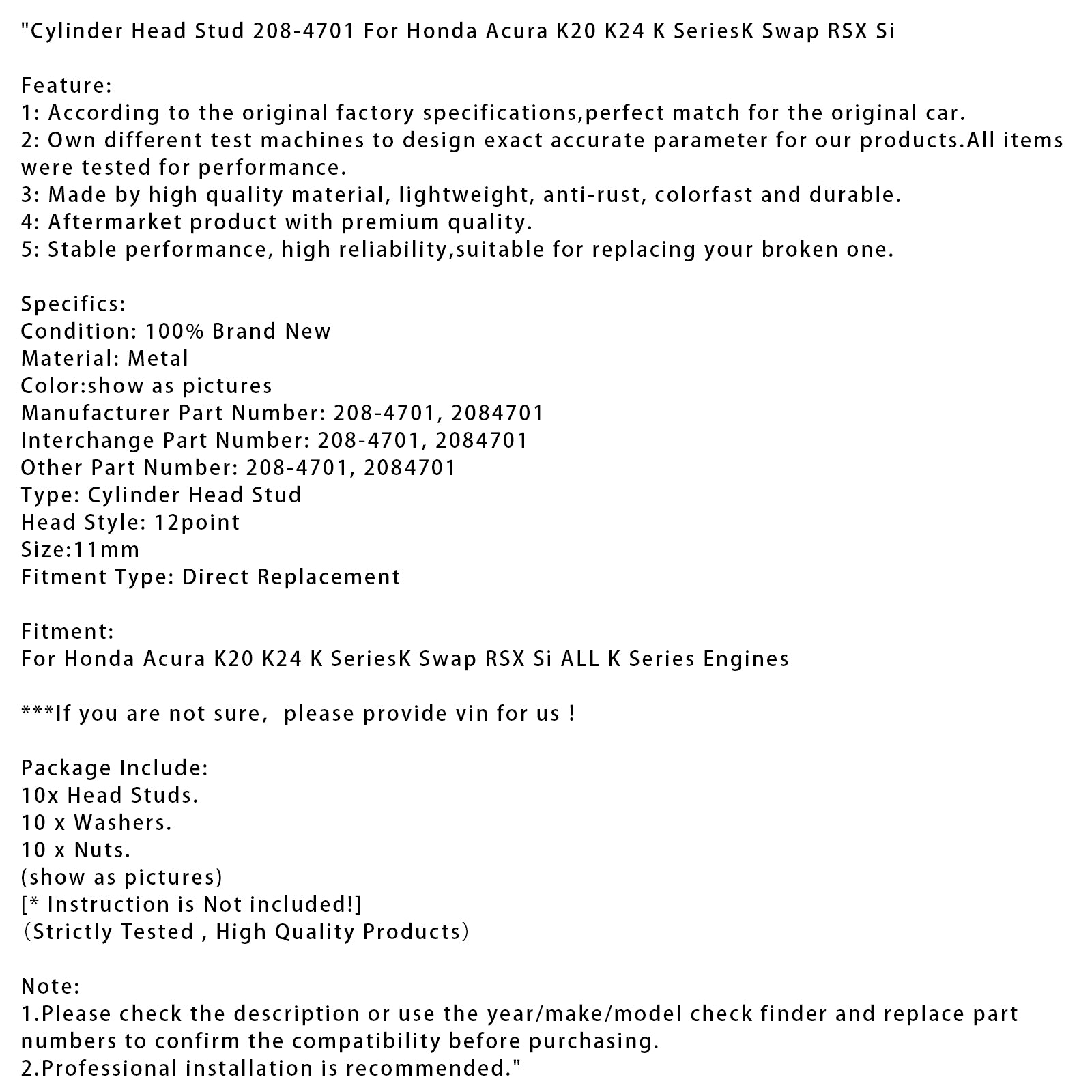 Cylinder Head Stud 208-4701 For Honda Acura K20 K24 K SeriesK Swap RSX Si