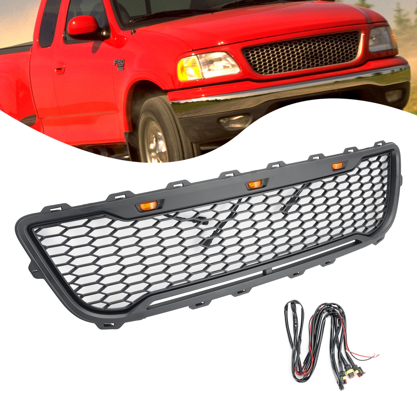 1999-2003 Ford F150 Raptor style Matte Black Front Honeycomb Bumper Grill W/Led