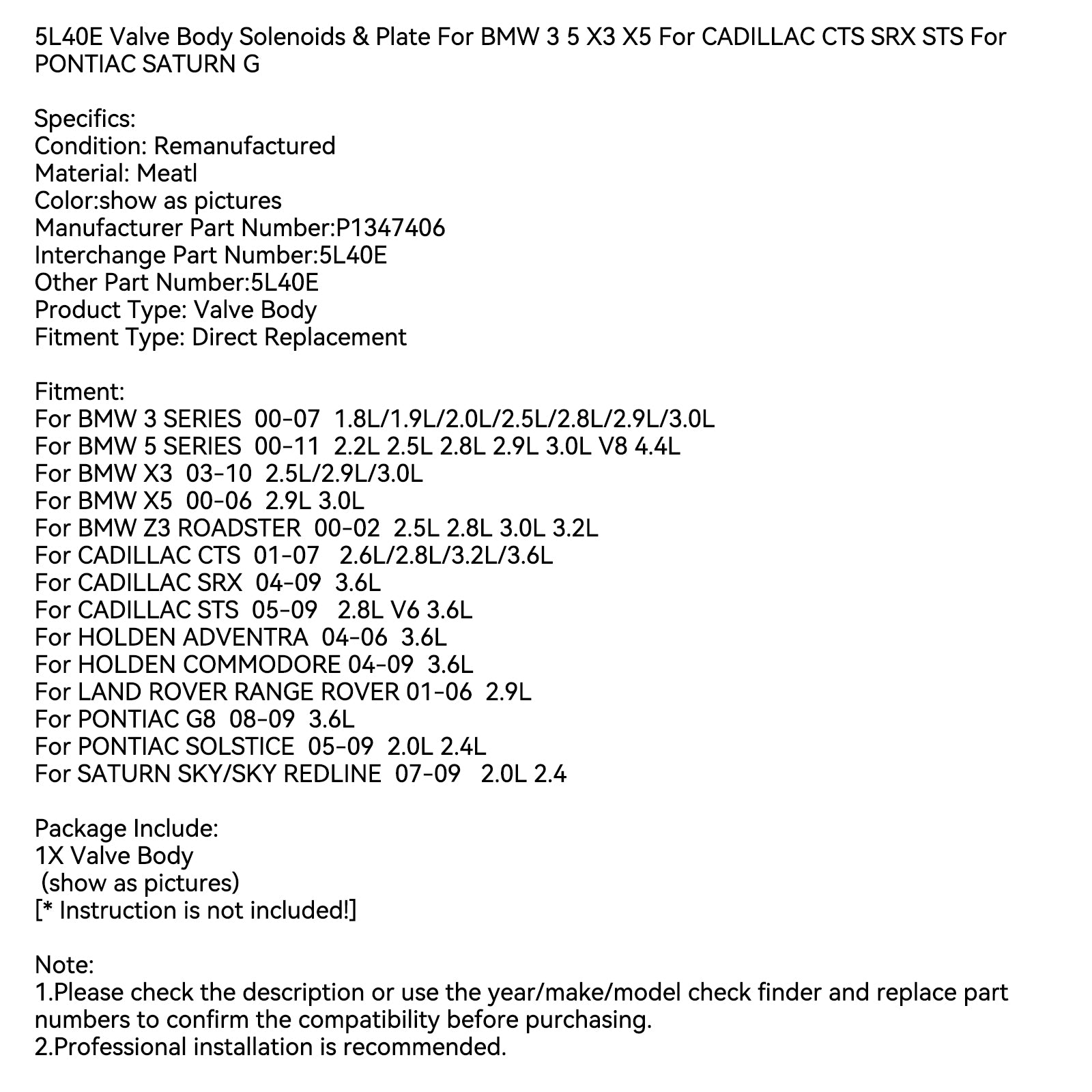 2005-2009 Cadillac STS 2.8L V6 3.6L 5L40E Valve Body Solenoids & Plate P1347406 Generic