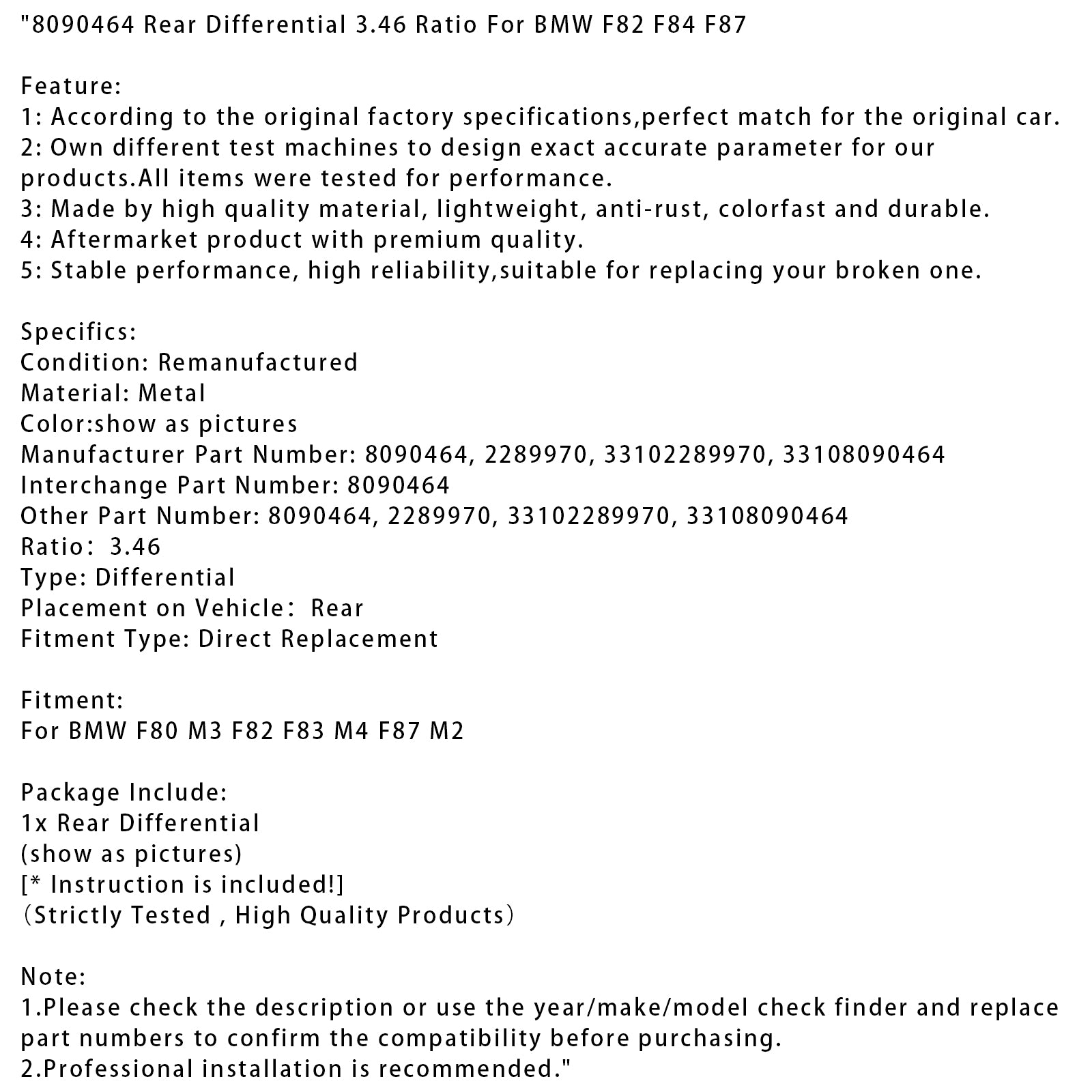 8090464 Rear Differential 3.46 Ratio For BMW F80 M3 F82 F83 M4 F87 M2