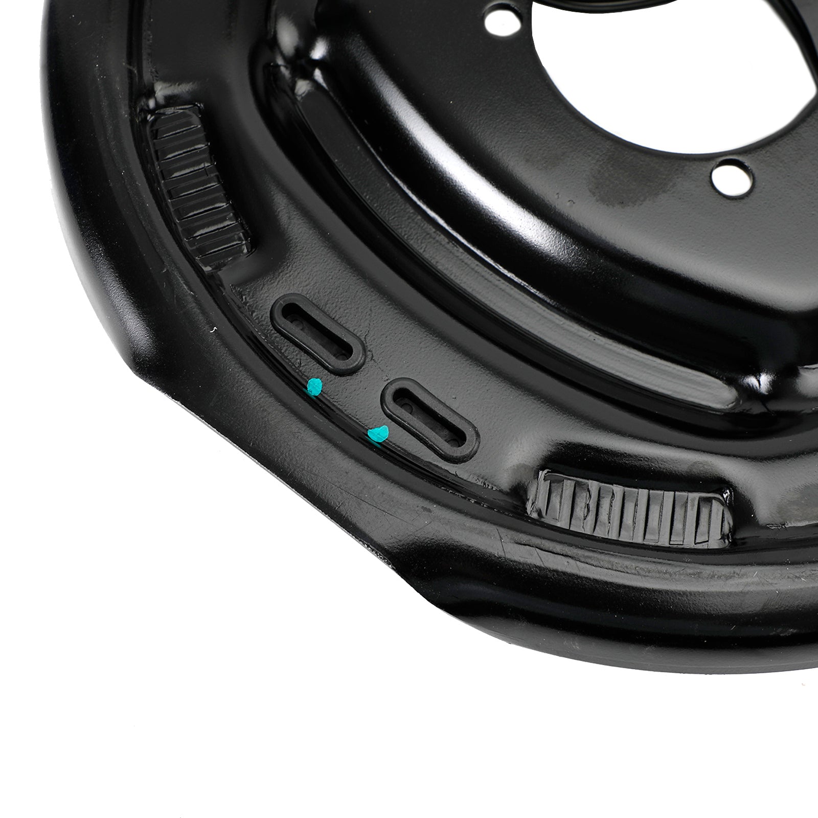 Self-adjusting driver's-side and passenger's-side brakes are 12" x 2". Brake pads are made of durable friction material for improved braking and longevity. E-coated backing plates resist rust. Fit 14.5" to 16.5" wheels.