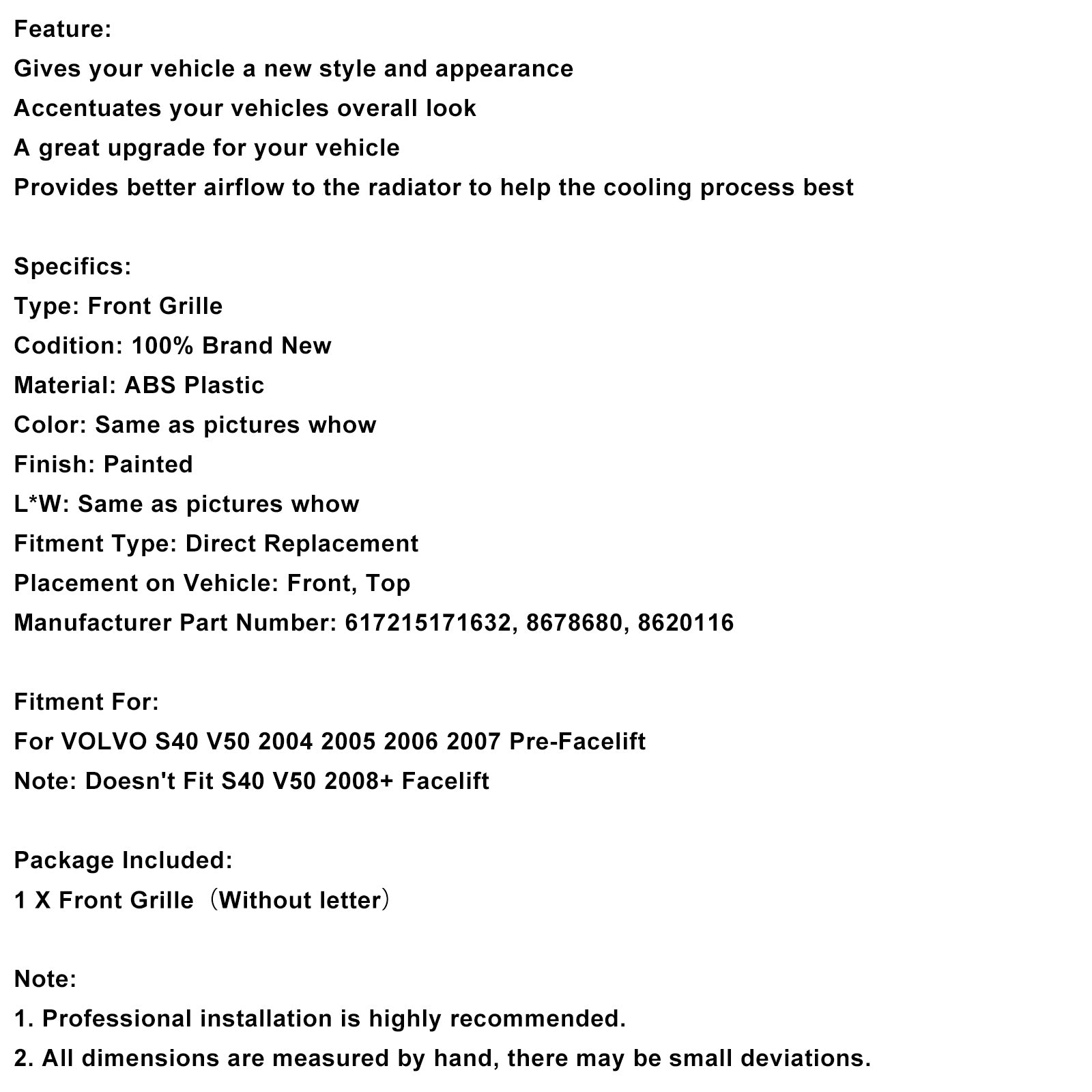 Gloss Black Front Bumper Honeycomb Grille Grill Fit Volvo S40 V50 2004-2007
