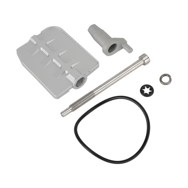 Valve Repair Kit includes a precision machined silver aluminum flapper valve, precision machined silver anodized aluminum bell crank lever, precision machined titanium pivot screw, stainless steel lock washer and a new silicone main housing o-ring seal.